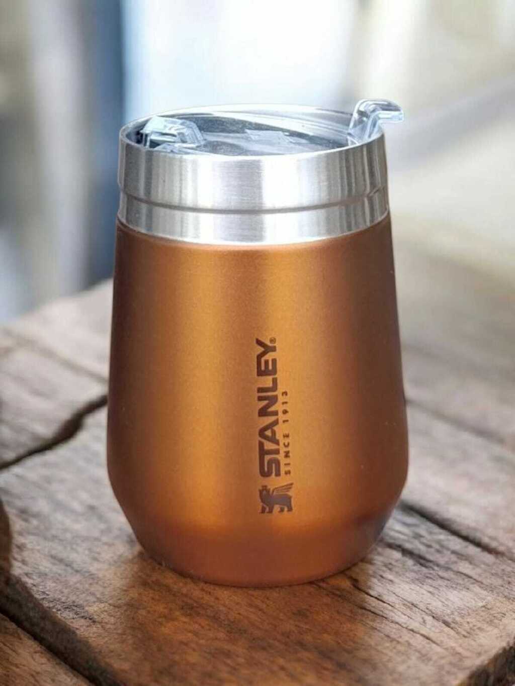 Com capacidade para brindar com um vinho, gim, drink bem refrescante, suco ou refrigerante da sua preferência, o Copo Térmico Stanley mantém sua bebida gelada até o último gole por até 5 horas ou até 20 horas, adicionando gelo. Feito com aço 18/8, ele também suporta líquidos quentes, como chá e café, preservando todo o sabor por até 1,5 horas.